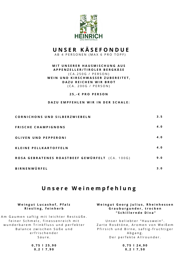 Ab dem 08. Oktober wieder: Unser leckeres Käsefondue. Einfach bei der Reservierung mit angeben und zusammen mit Freunden oder Familie genießen!